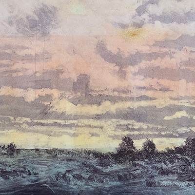 It was not until 2004 that he graduated with a degree in Fine Art from Ipswich School of Art. Overlapping with this period, he and his wife raised a family and ran a smallholding at Knodishall in Suffolk for thirty five years. That experience of direct engagement with the natural world has profoundly influenced his choice of subject matter ever since, and his work continues to display a profound awareness of the changing weather and varied landscape of East Anglia.